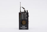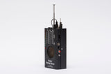 Er entlarvt fast jede technische elektromagnetische Umweltverseuchung automatisch im Energie-, Radio-, Funk- und Mikrowellenbereich und gibt diese über eine 10stufige Leuchtdiodenkette optisch und wie alle Esmog Spione akustisch, aber jetzt über einen Hochdruck-Dynamik-Lautsprecher, der höchste digitale Signale optimal wiedergibt (80 % Verbesserung!) wieder und gibt zusätzlich Auskunft über Lichtdisqualitäten.