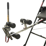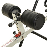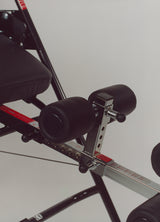 Die Kniestütze ist nur erforderlich für Menschen mit Hohlkreuzproblemen (Hyperlordose) oder ausgeprägten Formen von Skoliose. Die Lendenwirbelsäule liegt somit schön auf der Bank auf und die Dehnung wirkt bis in den Brust- u. Halswirbelbereich.