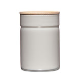 Die Dosen sind aus Emaille und der Deckel aus hochwertigem Eschenholz.
