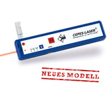 • Rotes Laserlicht. Der CEPES-Laser® arbeitet mit rotem Laserlicht. Den Durchmesser des Strahls können Sie mit einem Schiebeschalter auf ca. 0,7 oder 0,2 cm einstellen.