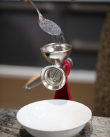 Klein aber oho – das gilt für diese Hand-Mühle. Diese kleine Meisterquetsche verarbeitet problemlos ölhaltige Saaten und quetscht Mohn, Leinsamen & Co. frisch für den direkten Einsatz beim Kochen und Backen. Durch die stufenlose Einstellung des Quetschgrades, erhalten Sie immer das volle Aroma in Ihrem gewünschten Stärkegrad.