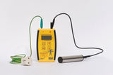 Das ESM-2 misst die Wechselspannung über eine Handsonde gegen Erde und zeigt deren Wert verständlich an.